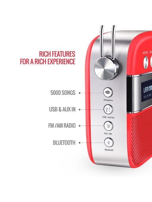 The 5000 songs music collection on Saregama Carvaan have been handpicked and classified based on singers, lyricists, music composers, moods etc. Each category can be selected by turning a jog-dial. So literally, with a simple turn of the knob, you can switch between Kishore Kumar classics, to R.D Burman’s pulsating hits, to timeless love songs or to soulful Sufi tracks all in their original versions, back-to-back without any ads in between. What’s more, Carvaan has also got the entire Ameen Sayani’s Geetmala countdown show spanning 50 years.